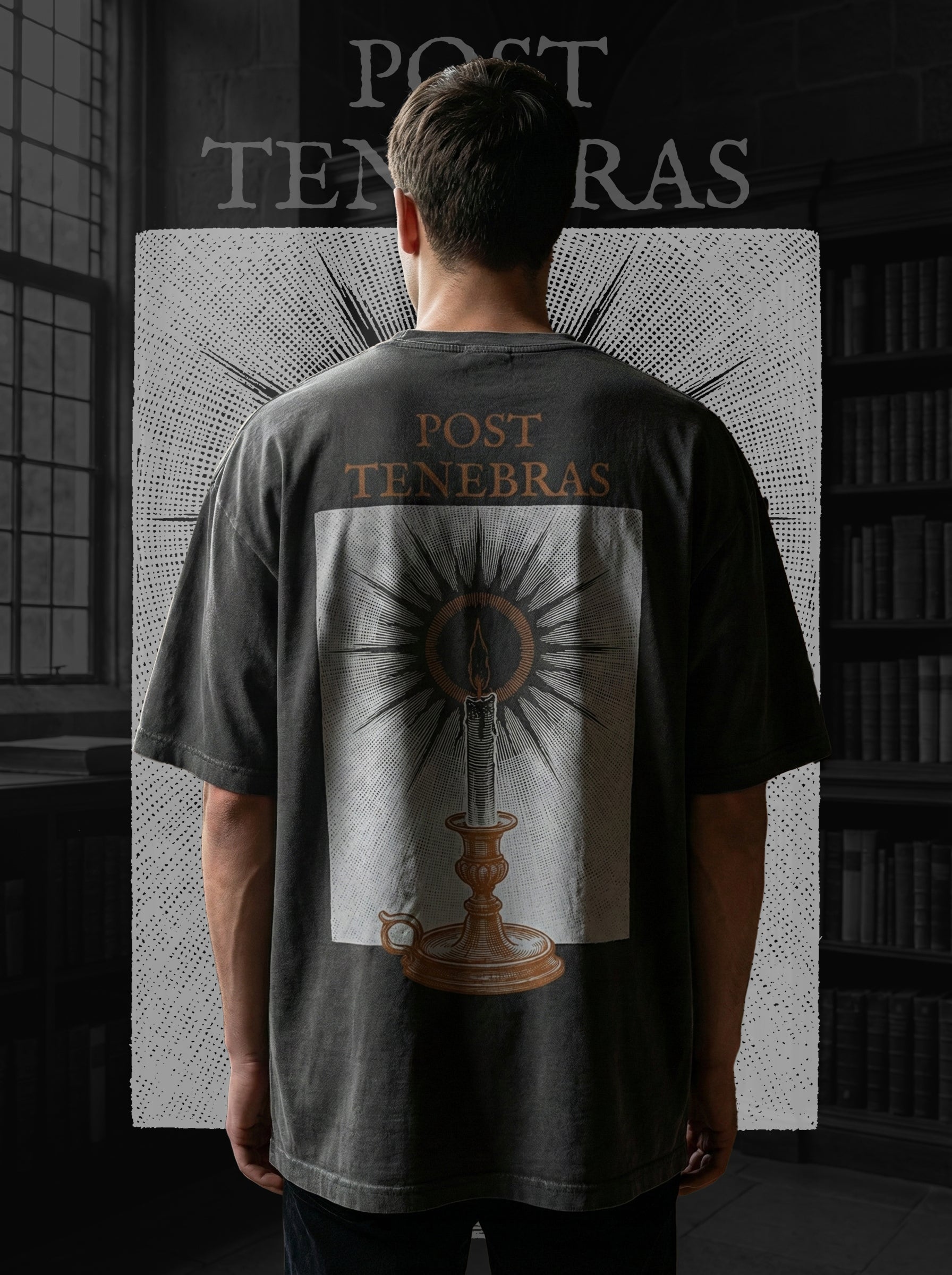 "Post Tenebras Lux" After Darkness, Light. A tribute to the Reformation, printed on vintage-washed, garment-dyed cotton.